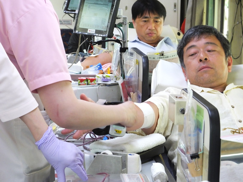 献血受付者数:74名献血者数:68名献血不適者数:6名 (血色素不足の方3名、その他の理由3名)