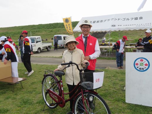 毎年提供しているホールインワン賞(男女各一名に自転車を贈呈)には、皆さん真剣かつ、一喜一憂があり、楽しい一日となりました。