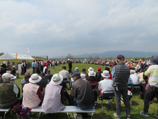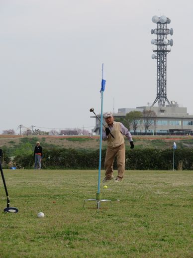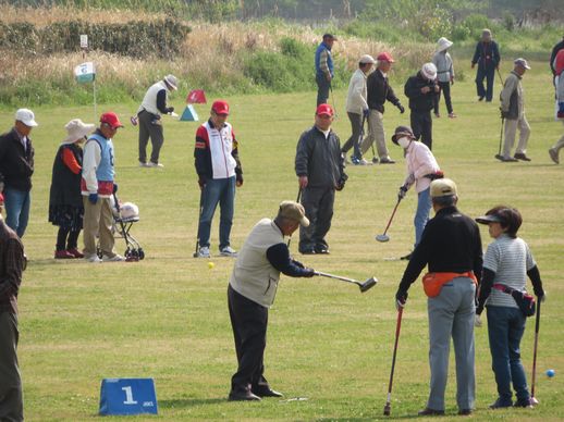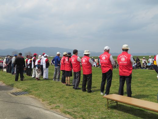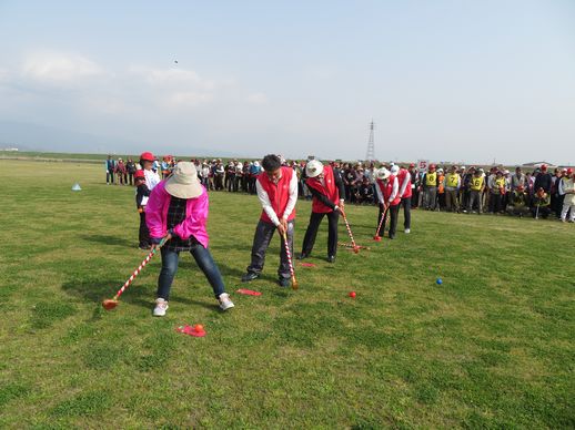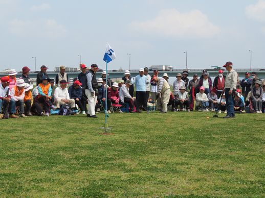 桜が満開の季節の中、久留米市筑後川河川敷グラウンドゴルフ場で開催しました。