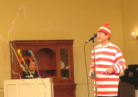 今回は、いつものサンタに混じって、大きめのミニオン、痩せたバッドマン、ハリーポッター、ウォーリー、スーパーマン、マレフィセント(魔女)などが集まった、とても愉快なクリスマス例会でした。